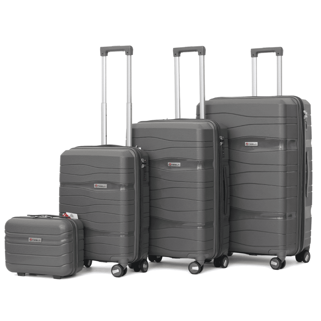 סט 4 יח׳ מזוודות איכות מאוד גבוהה מדגם TESLA PP החדש בלתי שביר!! צבע: אפור