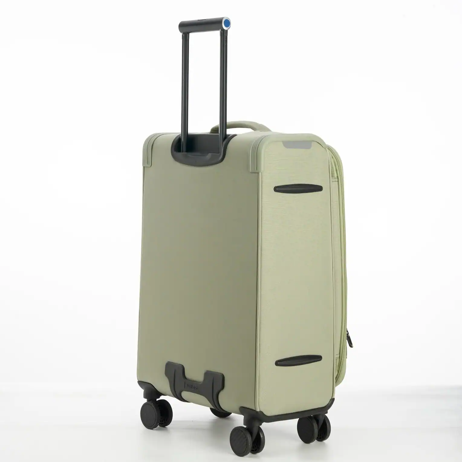 - למזוודה הקטנה שרוול אחורי חכם המאפשר הלבשת המזוודה הקטנה על ידית הטרולי של המזוודה הבינונית ושינוען יחד