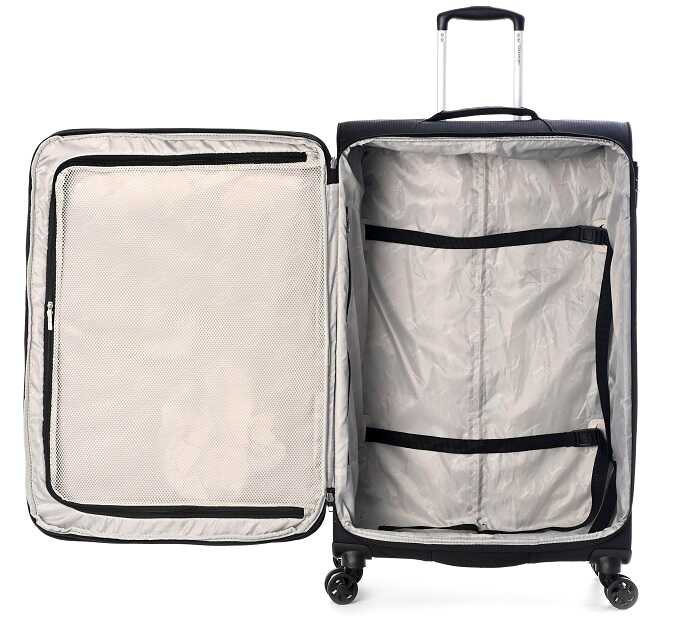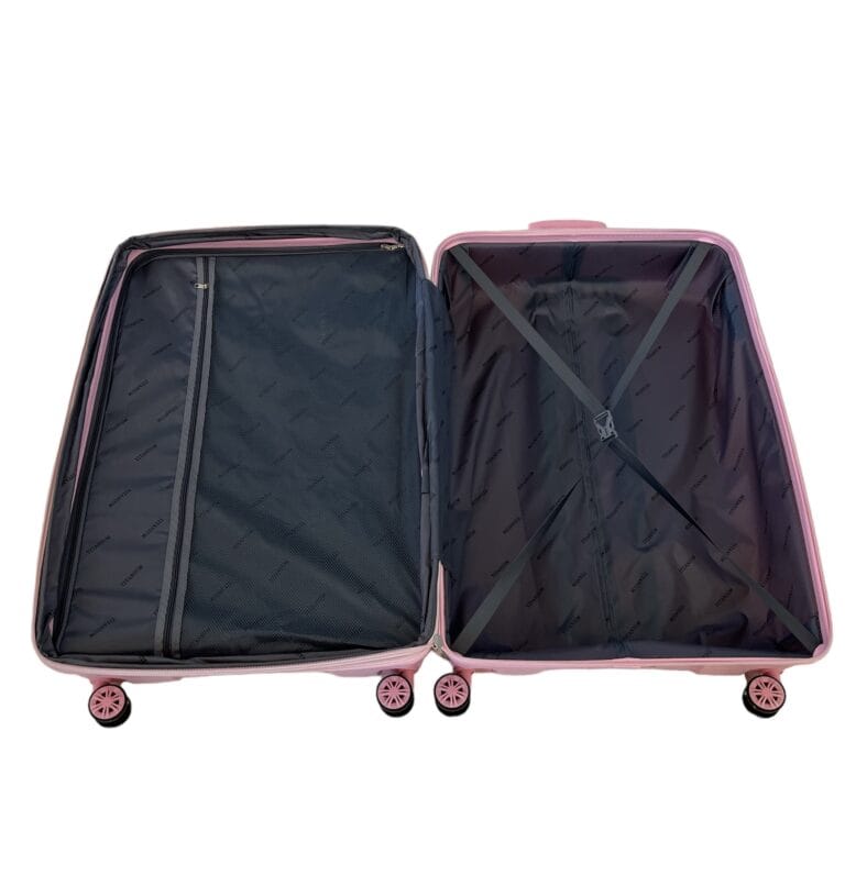 החלל הפנימי של המזוודות שלנו מחולק בצורה חכמה ויעילה. תמצאו בהן תא מרכזי מרווח, חוצץ פנימי עם כיסי רשת לארגון פריטים קטנים, ורצועות הידוק אלסטיות לשמירה על תכולת המזוודה במקומה. תכנון זה מאפשר אריזה מסודרת וגישה נוחה לחפצים שלכם בכל שלב בטיול.