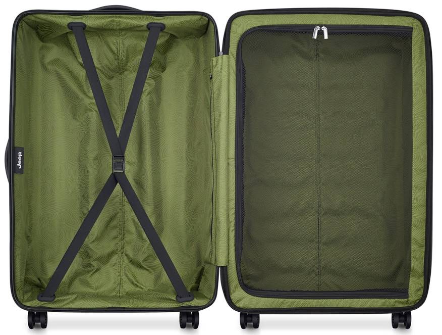 צאו להרפתקה הבאה שלכם עם מזוודה קשיחה גדולה 28״ מותג ג’יפ דגם JHOO4C הניתן להרחבה, לוגו מובלט וגלגלים כפולים עמידים שנועדו לכבוש כל שטח.